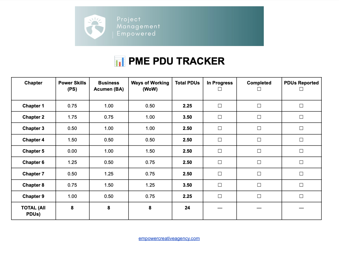 Focus Areas and PDUs: Power Skills (0.75 PDU) | Business Acumen (1 PDU) | Ways of Working (0.5 PDU)